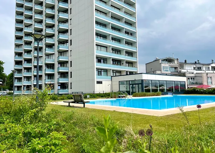 プ-ルの景色を望むPrinz Hamlet "Godewind"アパ-トメントアパ-トメントは,サウナ と屋内プ-ルがある海辺の宿泊施設を提供しています. Pagodenspeicherは3.7キロ離れているハンザパ-クはアパ-トから6キロです.